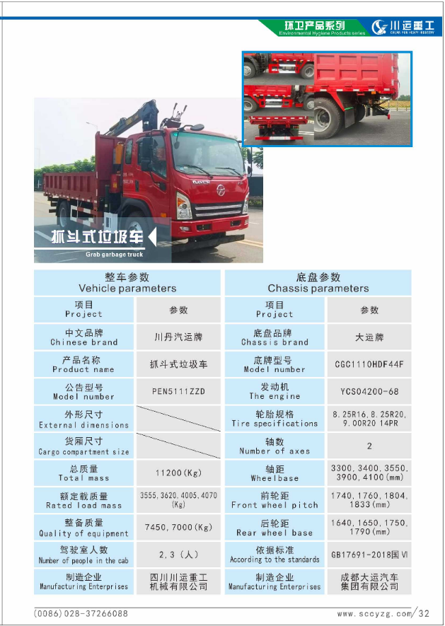 Sichuan Chuanyun Heavy Industry Machinery Co., Ltd. was established on May 31, 2021. The enterprise is located in Danling County Economic Development Zone, Meishan City, Sichuan Province. It devotes to the production, research and development, sales and related financial, leasing and logistics services of various types of road motor vehicles. The special vehicle series (new energy sanitation vehicle series, hazardous chemicals series, fire series, compression station series, military-civilian integration series), crane series (civilian series, military-civilian integration series), general semi-trailer series products are available.
